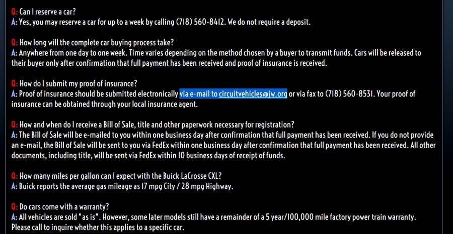 Circuit Vehicles E-mail – Frequently Asked Questions – Web Site Screen – January 11-2015