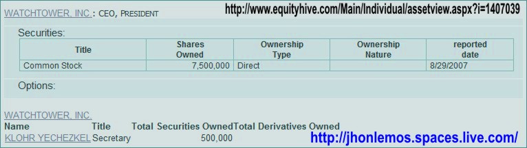 Klohr Yechezkel aquí en este documento aparece como Secretario de Watchtower, Inc.