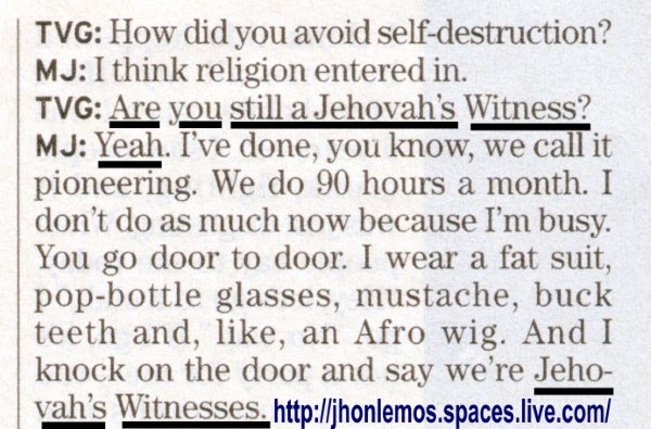 Revista “TV Guide” November 10, 2001, y página 20, donde Michael Joseph Jackson, declaró ser Testigo de Jehová y nunca se retractó de ello.